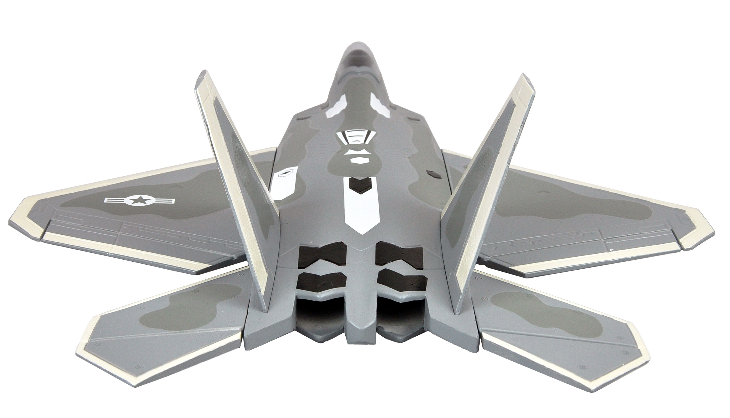 Die F-22 Raptor ist ein Luftüberlegenheitsjäger der fünften Generation, die ausschließlich von der US Air Force als Nachfolger der F-15A-D Eagle eingesetzt wird. Besondere Merkmale sind ihre Tarnkappeneigenschaften, die moderne Avionik und die Fähigkeit ohne Nachbrenner überschallschnell zu fliegen. Die Höchstgeschwindigkeit liegt bei 2.414 km/h und einer Reichweite von ca. 3.000 km.