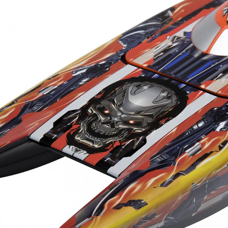 Dies ist ein schneller, elektrisch betriebener Offshore-Katamaran mit einem leistungsstarken, wassergekühlten Prushless-Power-System. Der Motor ist ein Outrunner und der ESC ist 60A.