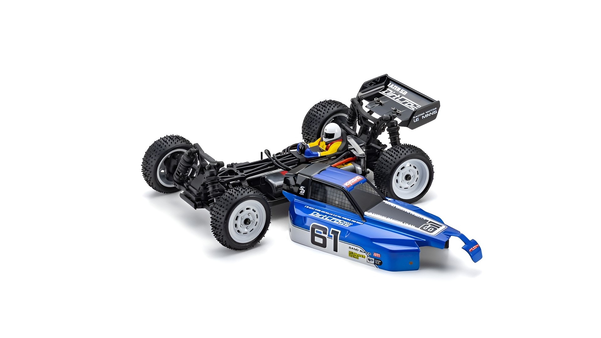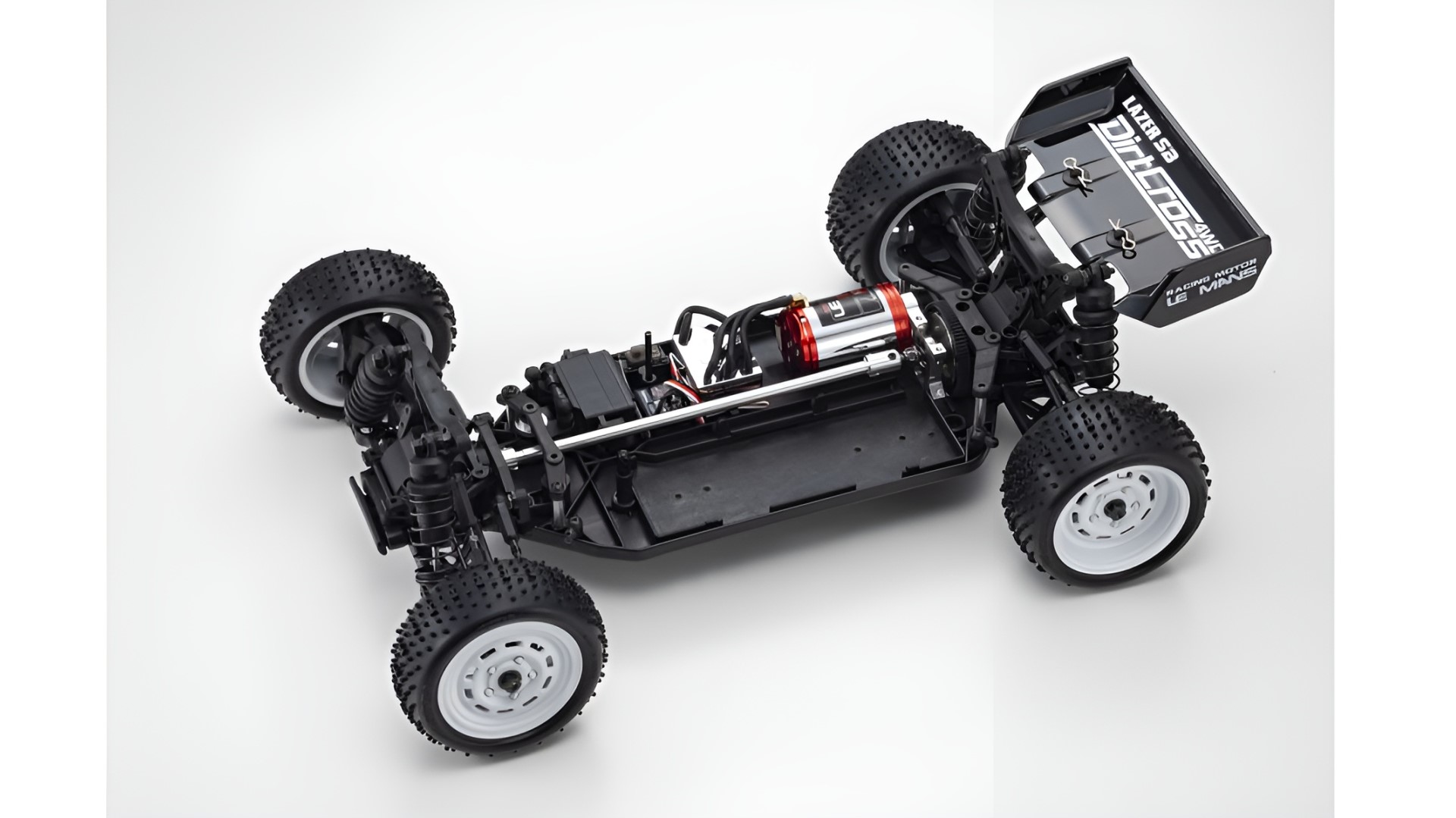 In der langen und bedeutenden Geschichte der 1/10 EP (elektrischen) R/C-Rennbuggys gibt es zwei Typen, die auf unterschiedlichen Antriebssystemen basieren. Die Modelle mit 2WD-Heckantrieb sind in der Regel einfacher zu montieren und zu warten und zeichnen sich durch wendige Fahreigenschaften aus. Dann gibt es die ebenso beliebten Modelle mit 4WD-Antrieb, bei denen die Antriebskraft auf alle vier Räder übertragen wird, um im Vergleich zum 2WD-Antrieb eine bessere Traktion auf Straßen mit wenig Grip zu erzielen. Für Fahrer, die einen Schritt nach oben von den Einsteigermodellen in Betracht ziehen, sind wir stolz darauf, den Lazer SB Dirt Cross 4WD vorzustellen, der eine kostenoptimierte Version des ZX-5 auf Wettbewerbsniveau ist, der weiterhin Leistung und Kontrolle als die Spitze der weltweiten 4WD EP Buggy-Rennkampagnen von Kyosho entwickelt hat. Während die Aufhängung und das Antriebssystem vom bewährten Lazer ZX-5 beibehalten wurden, bietet der Dirt Cross viel mehr als nur eine Kostenreduzierung; er wurde entwickelt, um eine neue Generation von R/C-Racern anzusprechen. Während die Grundform beibehalten wurde, wurde das Hauptchassis aktualisiert und für die neuesten Batterie- und Motorsysteme optimiert. Die Karosserie wurde jedoch komplett neu gestaltet, mit einer nach hinten versetzten Kabine (statt der bei Rennmodellen üblichen nach vorne versetzten Kabine), einer Fahrerfigur und neu entwickelten Speichenrädern für einen klassischen Retro-Buggy-Stil. Da der Dirt Cross auf einem reinrassigen Rennmodell basiert, ist Leistung garantiert. Durch die Kombination der umfassendsten Ausstattung zu einem günstigen Preis ist der ganze Spaß und die Leistung, die Off-Road R/C zu bieten hat, in diesem Mittelklasse 4WD-Buggy perfekt optimiert.