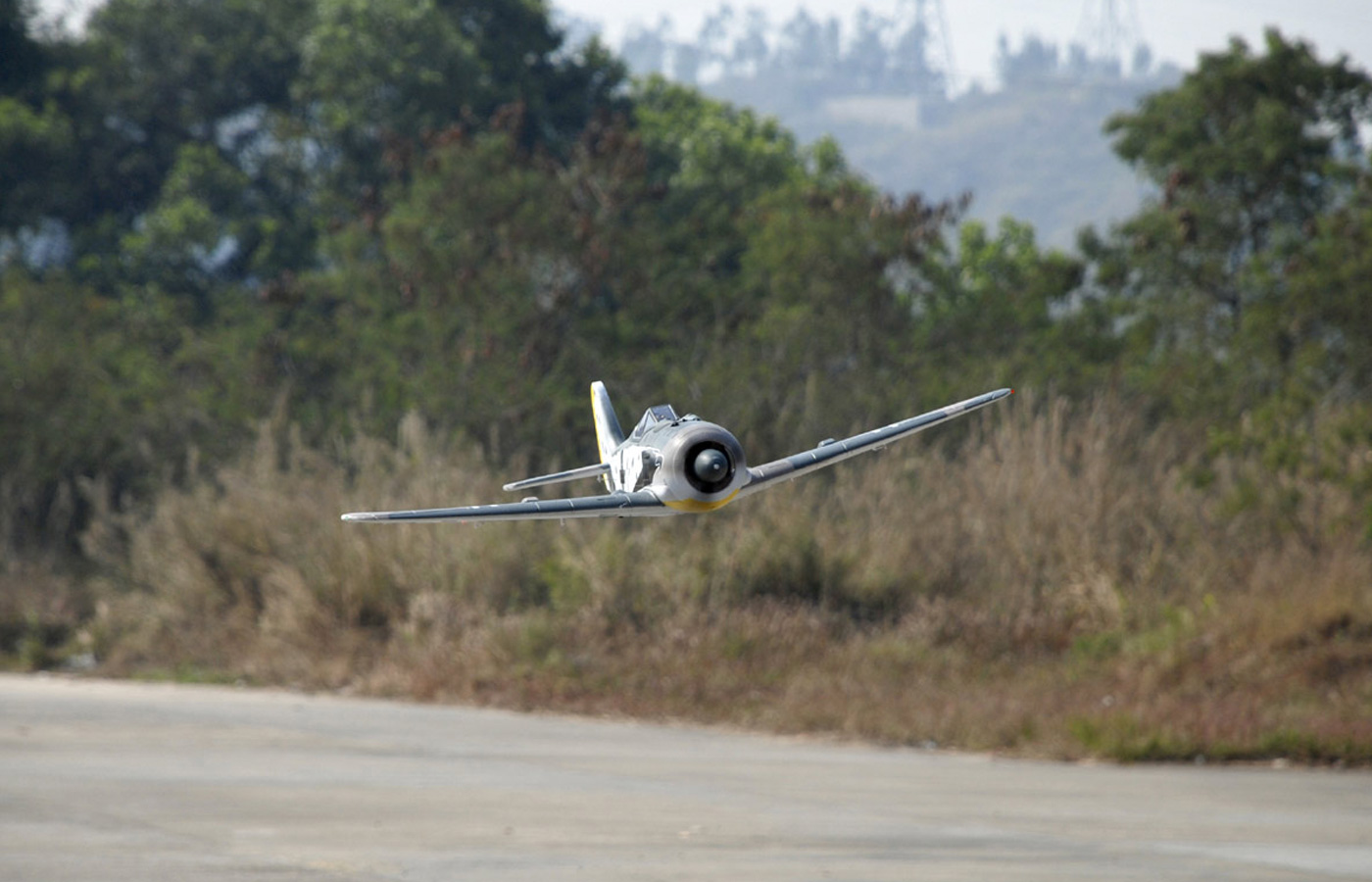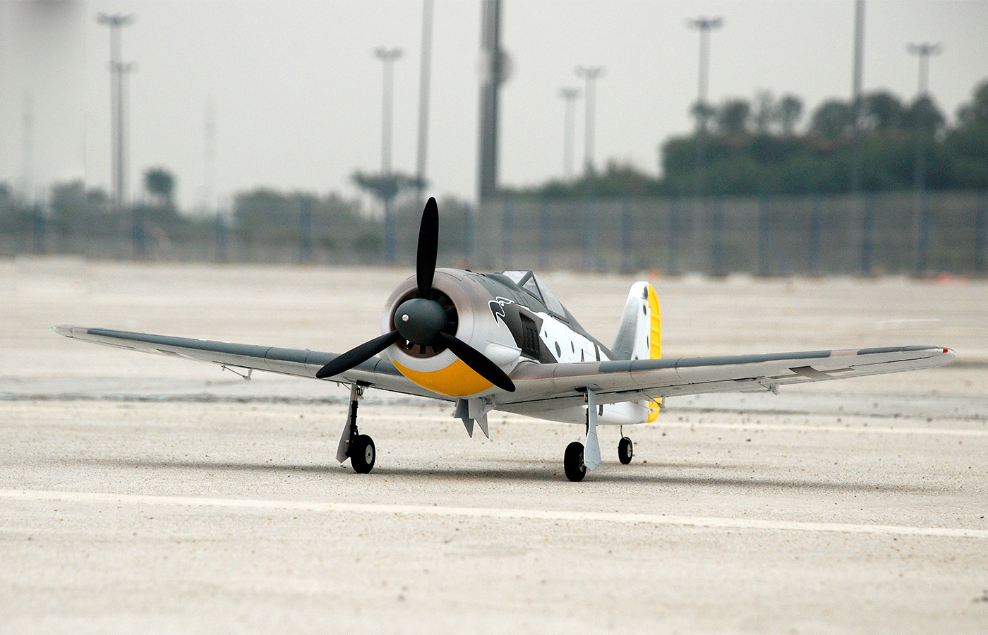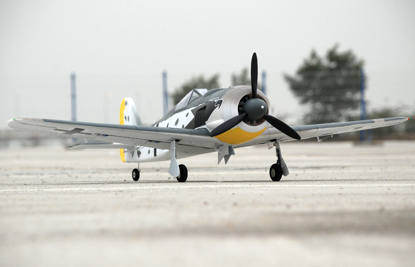 Mit dem bereits fertig montierten elektrischen Einziehfahrwerk und der authentischen Kabinenhaube wird das Gesamtbild dieses Warbirds abgerundet. Die FW-190 sorgt somit für staunende Gesichter auf jedem Flugplatz.