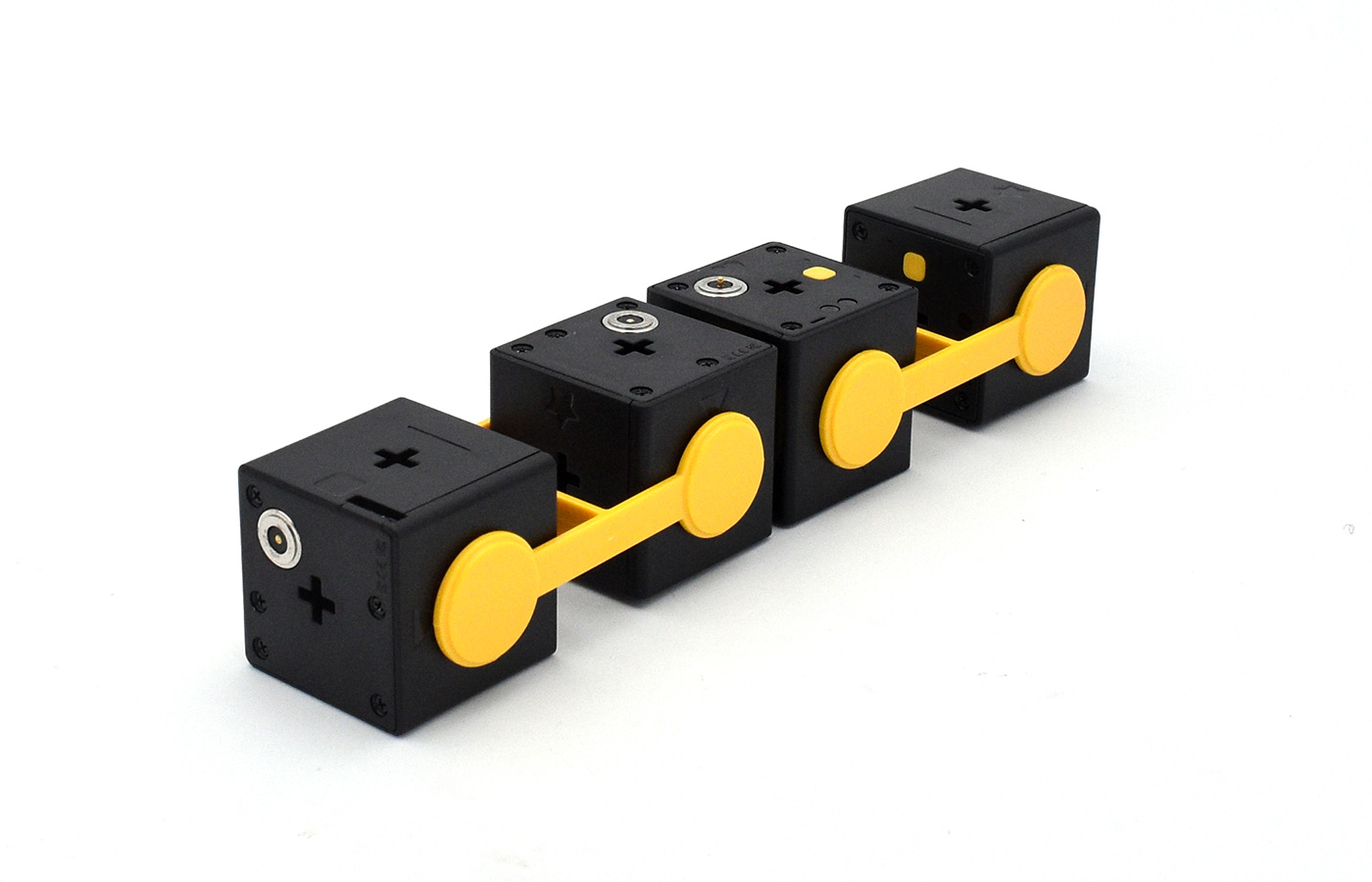 Das Set besteht aus 4 CUBEs (CUBE = elektronische Funktionseinheit) und den mitgelieferten Verbindungen. Insgesamt entstehen so fünf völlig verschiedene Robotertypen - und damit eine riesige Vielfalt an möglichen Aktionen und Funktionen!