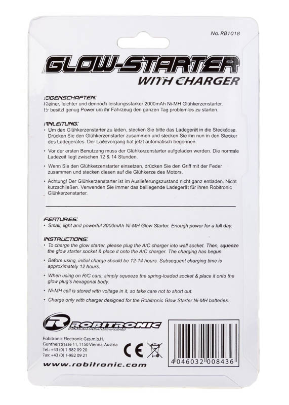 RB1018 Robitronic Glühkerzenstarter 2000mAh mit Ladegerät