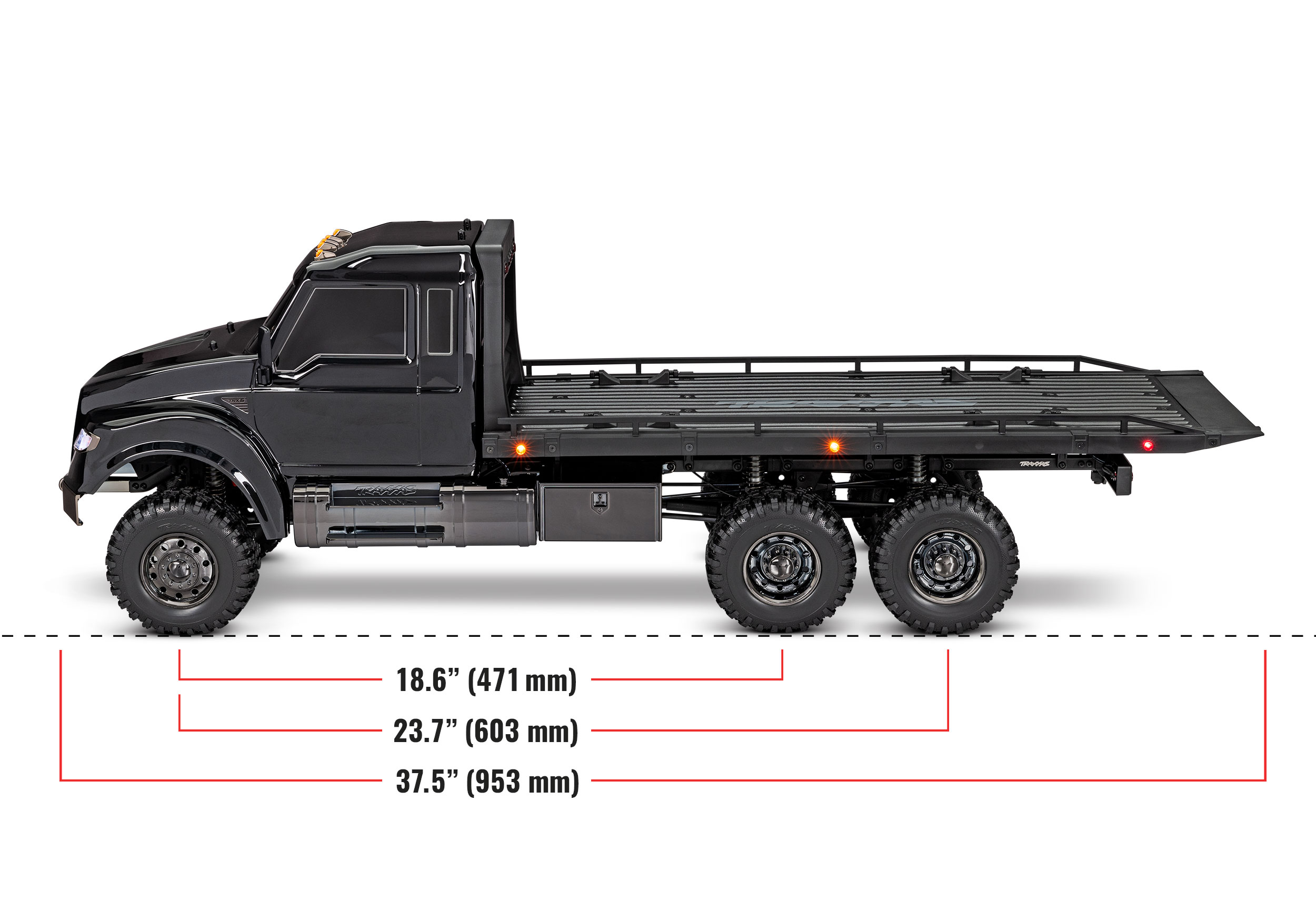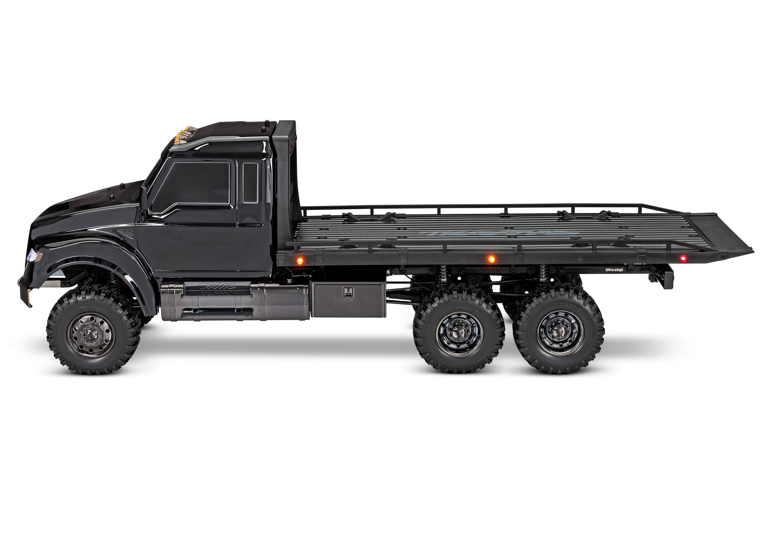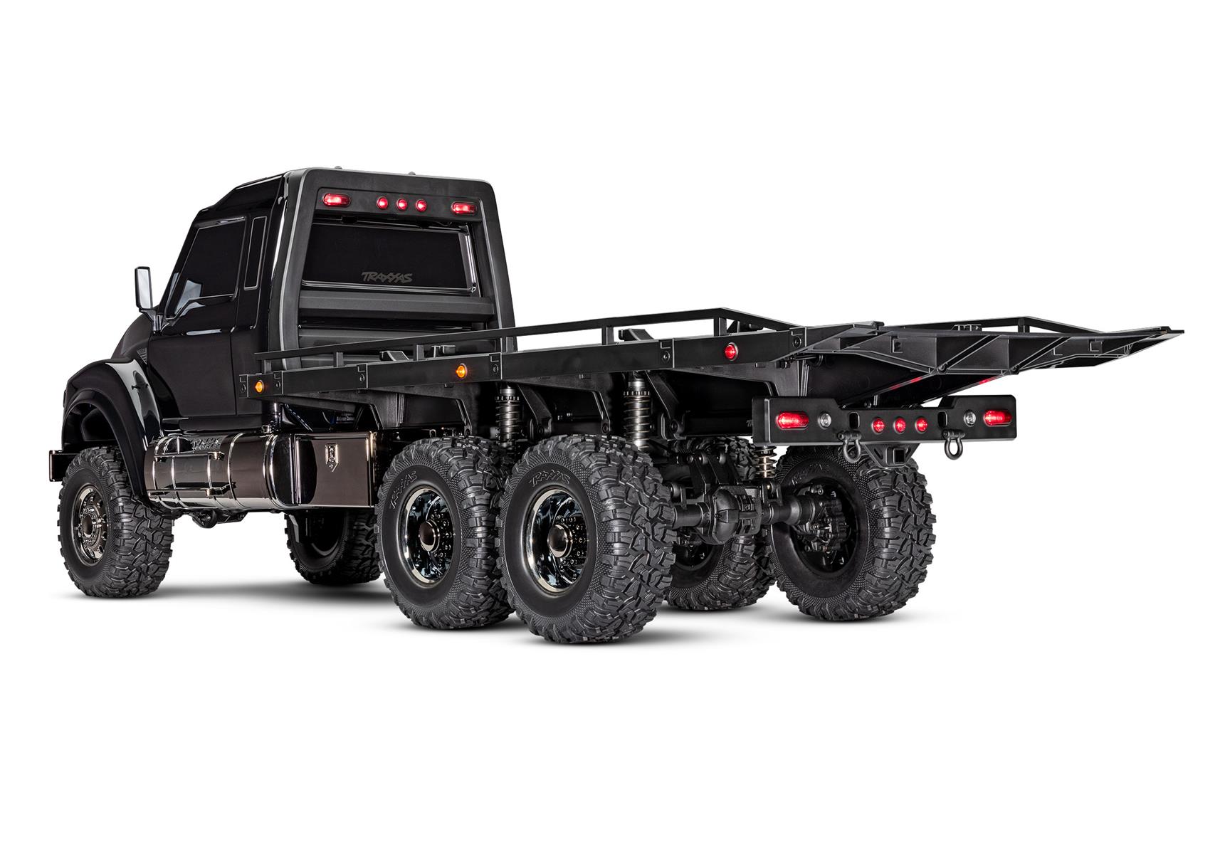 Ein Blick auf den neuen TRX-6® Ultimate RC Hauler und Du weißt, dass dieser Truck es ernst meint. Basierend auf der äußerst leistungsfähigen TRX-6-Plattform ist der RC Hauler der größte und härteste Truck in der TRX-Produktpalette. Die robuste Optik wird durch eine noch robustere Leistung unterstützt. Die Heckpritsche ist mit verstellbaren Unterlegkeilen und Spanngurten ausgestattet, um 4-Tec® Modelle mit Stil zu transportieren und zu präsentieren. Ein hochdetailliertes LED-Beleuchtungssystem und schwarz-über-schwarz verchromte Karosserieteile verleihen dem Hauler einen harten, bedrohlichen Look. Der Ultimate RC Hauler ist Traxxas Tough™ mit Portalachsen, High-Low-Getriebe und T-Lock™ Fernsperrdifferentialen gebaut. Wenn Du bereit bist für groß angelegte RC Abenteuer, kommt nichts in die Nähe der Traxxas Ultimate RC Hauler.