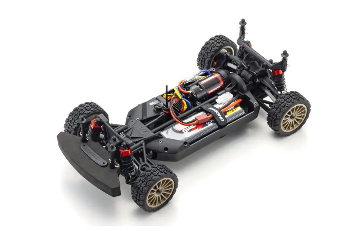 In der Welt der 1/10 EP (Elektro)-Modelle, die boomende Popularität der FAZER Mk2 wird durch die Kombination von seiner außergewöhnlichen Leistung und Handhabung, ob für Anfänger mit dem vormontierten Readyset oder die einfach zu montieren Kit angetrieben. Jetzt wird die FAZER Mk2 um eine Rallye-Waffe in Form der FZ02-R erweitert. Die Aufhängung ist die Grundlage der Rallye-Performance, und die FZ02-R verfügt über vordere und hintere Stoßdämpferstreben, die für die Unterstützung von Öldruckstoßdämpfern mit neu konstruierten Kolben und Gehäusen entwickelt wurden, die einen großen Federweg und eine außergewöhnliche Laufleistung sowohl auf der Straße als auch auf den rauesten Oberflächen bieten. Der Allradantrieb mit Kardanwelle bietet eine hervorragende Traktionskontrolle und arbeitet optimal mit den neuen Rallye-Reifen zusammen, um die Motorleistung effizient auf die Fahrbahn zu übertragen. Die vordere Stoßstange schützt den vorderen Teil des Chassis vor Stößen vor und nach Sprüngen, und eine Chassisabdeckung schützt die R/C-Einheiten vor Schmutz, Sand und Steinen. Der Bausatz enthält Kyoshos maßstabsgetreue Nachbildung des Subaru Impreza WRC2002, der durch Tommi Mäkinen berühmt wurde, der die erste Runde der Rallye Monte Carlo viermal in Folge gewann. Eine optionale LED-Lichteinheit, die unter Verwendung der tatsächlichen Konstruktionsdaten und Materialien des Originalfahrzeugs nachgebildet wurde, kann ebenfalls an der Karosserie angebracht werden. Dieses einfach zu verarbeitende Readyset verfügt über den für Subaru typischen Blauton mit dem 6-Sterne-Logo und goldenen 15-Speichen-Rädern, um die Leistung und das Erlebnis von Subarus goldenem Zeitalter der Rallye-Dominanz mit Vollgas nachzustellen.