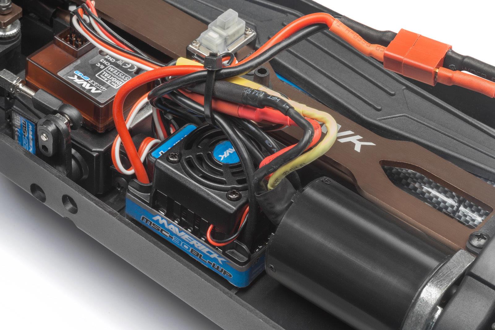Als Strada aus der Red Range besitzt er einen leistungsstarken Bruhsless-Antrieb. Dieser besteht aus einem starken MM-22BL 3215kV BL Motor und dem wasserdichten MSC-30BL-WP BL Fahrtenregler. Mit der Brushlees-Power am Abzug fährt Dein Maverick schneller als je zuvor.