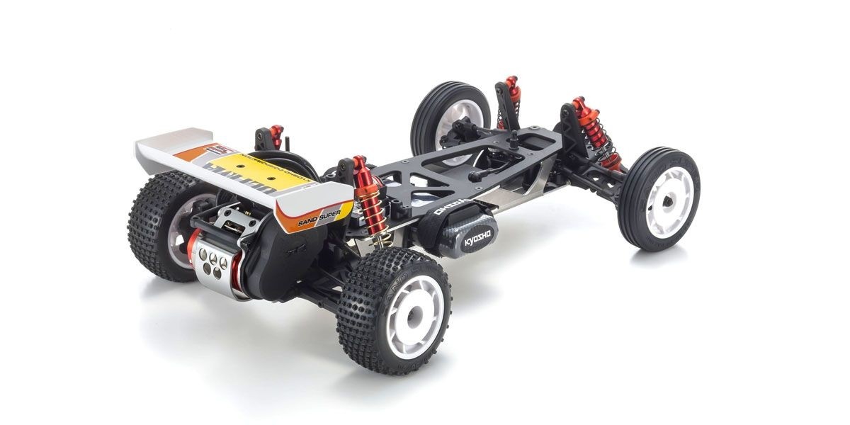 Herausgekommen ist der Ultima 1986, aufbauend auf der Technik des OPTIMA hat KYOSHO einen Elektrobuggy-Wirbelwind kreiert, der durch die gesamte RC Szene fegte. KYOSHO’s Vintage Ultima 2019 wurde im Design und Aufbau modernen Antriebsstandards (neue Akkugeneration etc.) und Leistungsstandards angepasst. Der Monocoquerahmen ist z. B. aus A60601T Aluminiumlegierung, und die Multipinblock-Hinterradreifen sorgen für optimane Vortrieb auf modernen Rennstrecken. Die Mechanik ist komplett kugelgelagert, um Reibungsverluste zu minimieren und im Zusammenspiel mit den Ritzeln aus Metallegierung, der Slipperkupplung und dem Motorschutz den gesamten Antrieb zu schützen. Der Heckflügel ist aus crashbeständigem Kunststoff. Erlebe die Nostalgie des Ruhmes von Ultima mit der 2019er Version, welches ein moderner Rennbolide ist auf Weltmeisterniveau ist. KYOSHO Ultima Vintage wird als Bausatz zum Selberbauen geliefert.