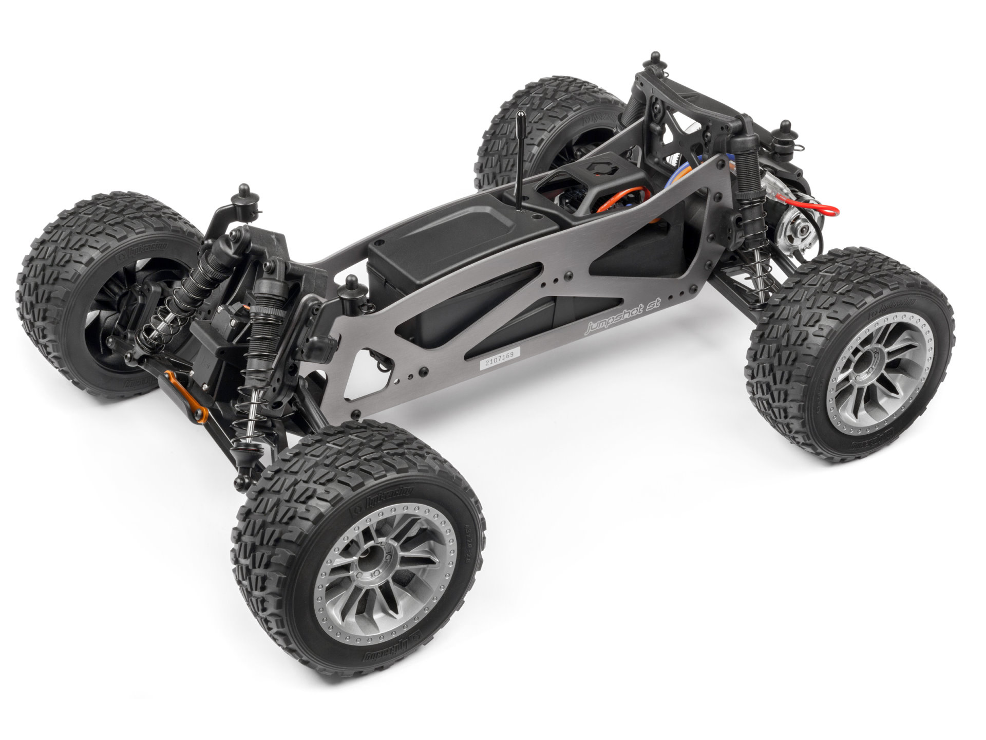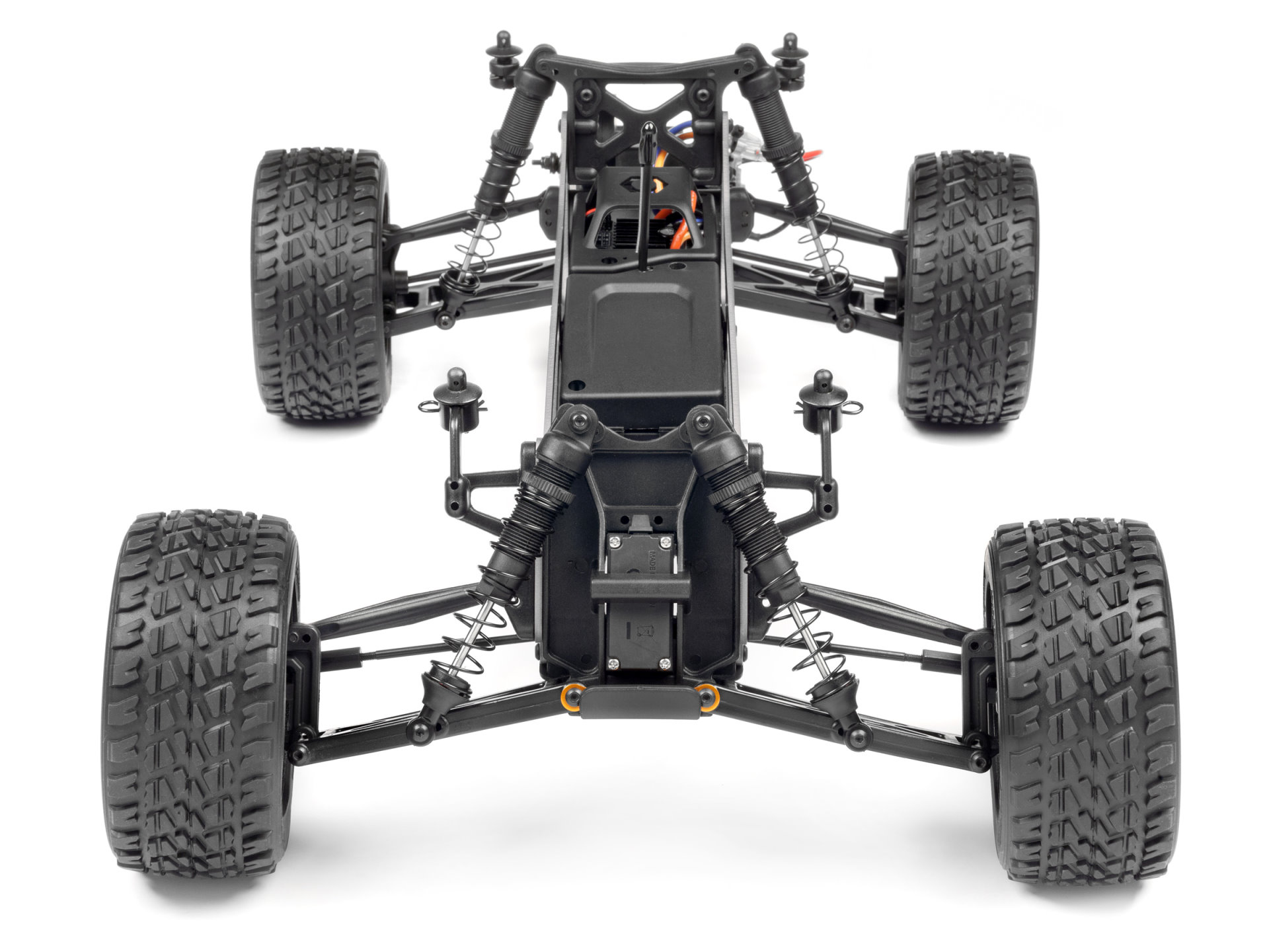 Unter der Karosserie des Jumpshot ST V2 befindet sich ein TVP-Chassis (Twin Vertical Plate) im Savage-Stil für ein supersteifes Chassis und ein ausbalanciertes Gewicht. Der modulare Aufbau des Jumpshot-Gehäuses bietet Ihnen einfache Wartung und dauerhaften Crashschutz für die gesamte Elektronik. Der Zugriff auf den Akku erfolgt schnell von unterhalb des Modells, sodass der Akkuwechsel für mehr Fahrspaß besonders schnell vonstatten geht! Der Jumpshot ST V2 wurde außerdem mit einem brandneuen Look aktualisiert, das Design wir die Aufmerksamkeit aller Ihrer RC-Freunde auf sich ziehen!