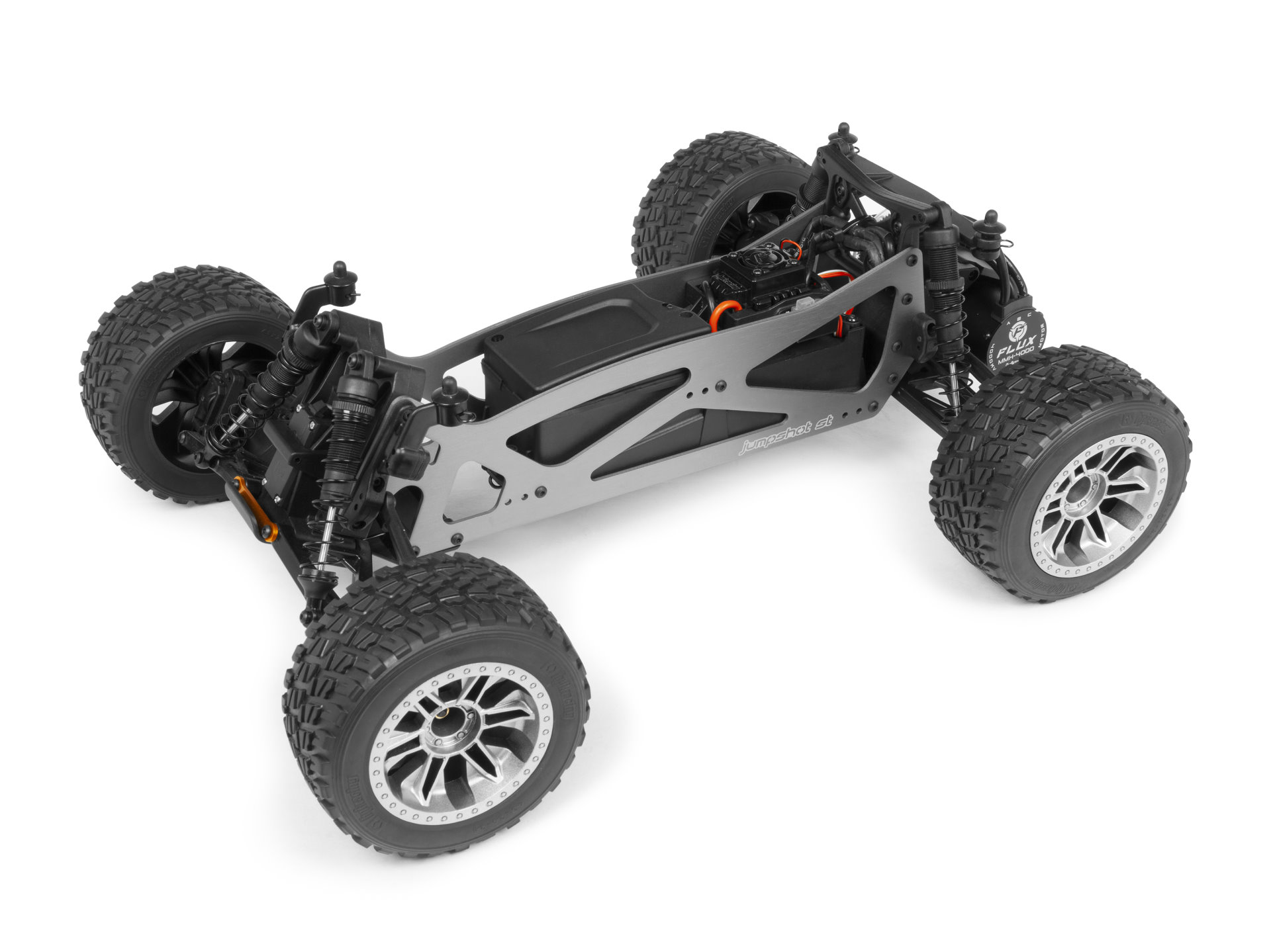 Aber jetzt bringen wir mit dem Jumpshot FLUX die Dinge auf ein ganz anderes Niveau und laden den Spaß mit einem FLUX 3S-Geschwindigkeitsregler und einem bürstenlosen 4000-kV-Motor auf! Fügen Sie einfach ein LiPo-Paket hinzu, um verrückte Stunts, Wheelies auf Befehl und alle verrückten Geschwindigkeitsläufe freizuschalten!