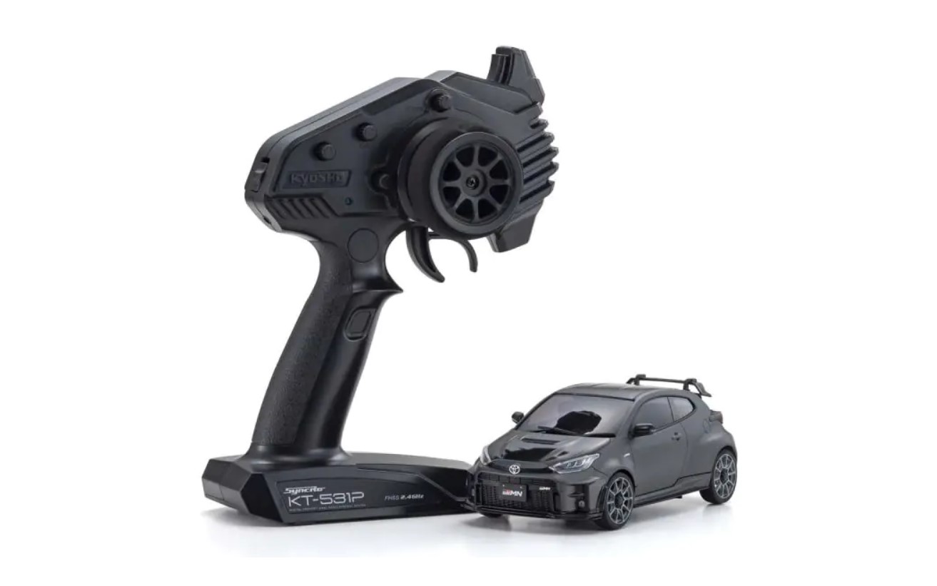 Um seine dynamische Leistung noch mehr Fahrern zugänglich zu machen, ist der MINI-Z AWD jetzt in einem Readyset erhältlich. Das MA-020 Chassis verfügt über eine VCS (variable Sturzaufhängung) an der Front, die die Sturzveränderung mit dem Hub der Aufhängung optimiert, und eine speziell entwickelte Platine. Das Chassisdesign bietet Platz für die Installation der optionalen Gyroeinheit (separat erhältlich: MZW446>hier für Gyrohalterung). Der Kreisel kann durch Drehen eines kleinen Volumens am Chassis eingestellt werden, um das Ausmaß der Lenkkorrektur als Reaktion auf Änderungen der Chassis-Haltung wiederzugeben, so dass Anfänger bis hin zu Experten ihr volles Potenzial fahren können. Das vollständig mit Präzisionskugellagern ausgestattete MA-020 Chassis wird im Readyset durch die einzigartige Scale-Karosserie und das 2,4-GHz-Syncro-KT-531P-R/C-System ergänzt, das keine Frequenzbandeinstellung erfordert - und das alles zu einem günstigen Preis. Setzen Sie einfach die Batterien ein und genießen Sie den Nervenkitzel des Driftfahrens mit dem mitgelieferten Satz Driftreifen. Das Chassis ist mit fast allen ASC MINI-Z Karosserien kompatibel (für einige Karosserietypen können zusätzliche Teile erforderlich sein). Der MINI-Z AWD verspricht eine einzigartige Welt voller dramatischer Renn-Action, die Sie erleben und genießen können.