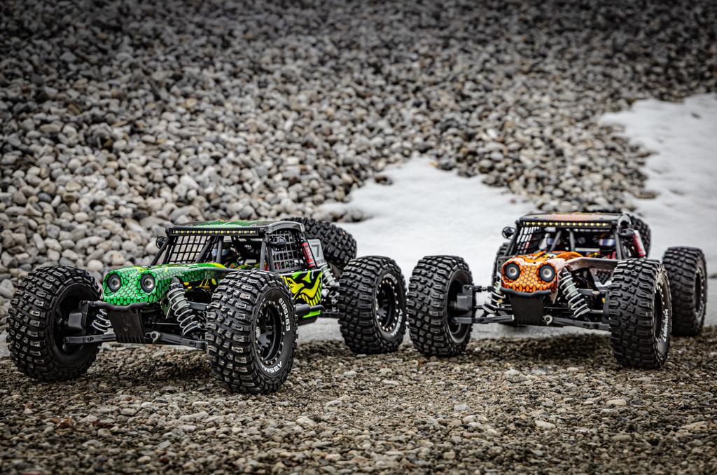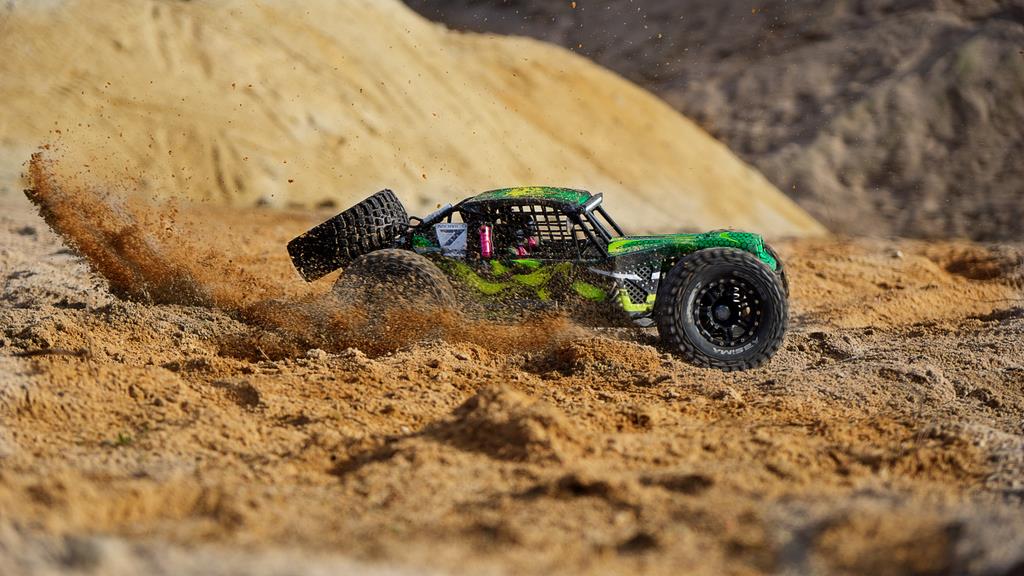 Zum einen kannst Du durch einen Drehregler an der Fernsteuerung das Fahrzeug auf eine humane Höchstgeschwindigkeit drosseln. Zum anderen steht ein „Beginner-Modus“ zur Verfügung, welcher auch über die Fernsteuerung einstellbar ist und die Maximalleistung auf 50% reduziert. Der Betrieb ist grundsätzlich auch mit 2x 2S LiPos möglich. Willst Du jedoch die volle Leistung von +/- 100 km/h abrufen, solltest Du zu sehr leistungsfähigen 2x 3S LiPo Batterien mit einer hohen C-Rate (60C +) und gutem Innenwiderstand tendieren. Für weitere Feinabstimmungen ist eine separat erhältliche Programmierbox verfügbar.