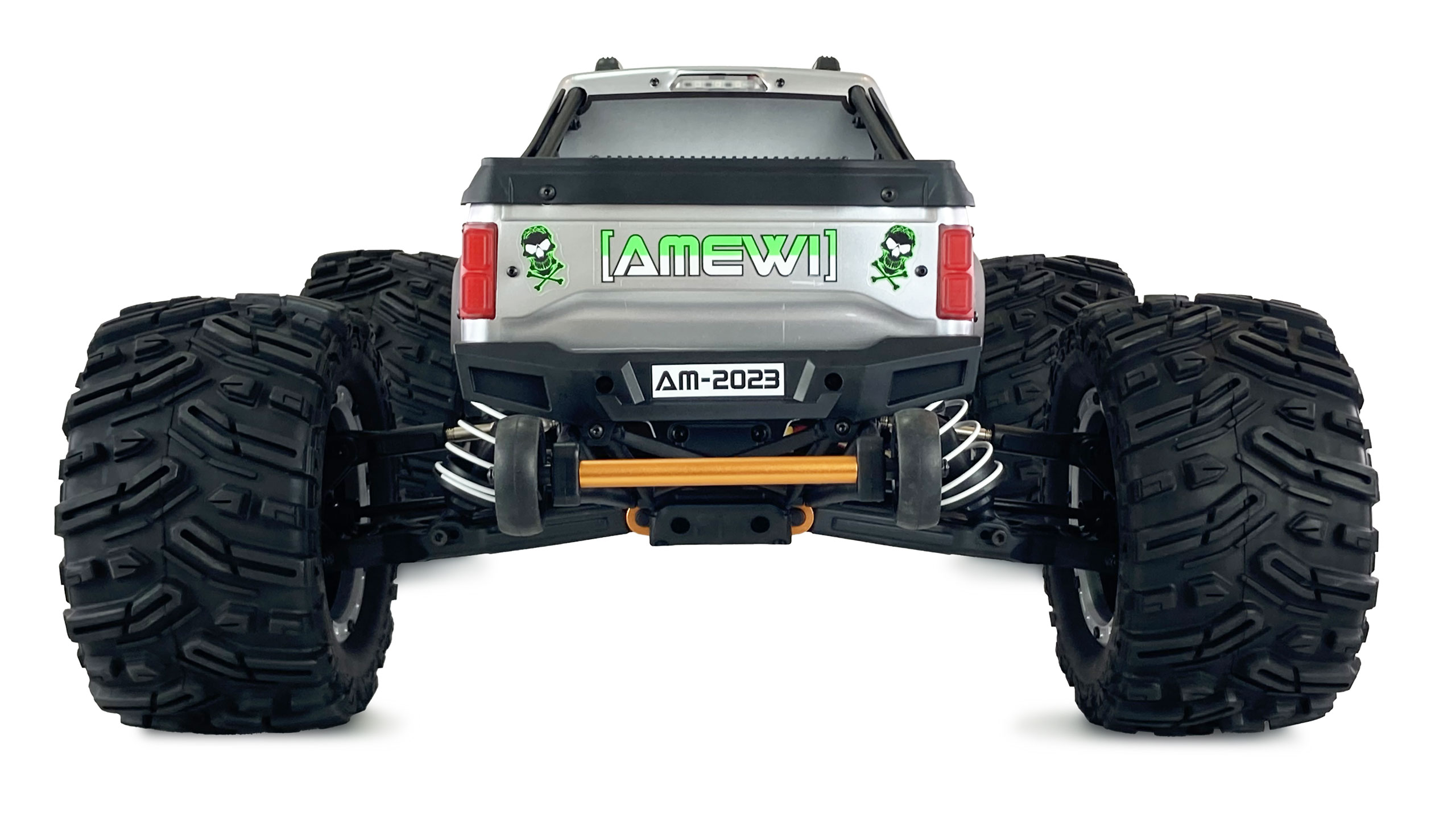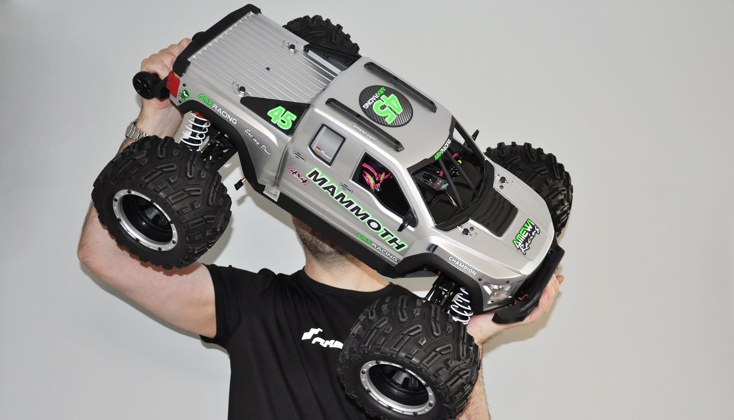 Highspeed-Spaß: Durch den 6S-Antrieb gibt der Mammoth richtig Gummi und wird auf bis zu 80km/h beschleunigt. Die übergroßen Monstertruck-Reifen sorgen dabei für brachialen Vortrieb auf jedem Untergrund. Ein massives Mitteldifferential ermöglicht die optimale Kraftverteilung an beide Achsen. Dank der großen Bodenfreiheit gibt es kaum Hindernisse, die dieser Koloss nicht bewältigen kann. Wer ordentlich Gas geben und gleichzeitig nie die Balance verlieren möchte, findet an diesem AMXRacer seine wahre Freude.