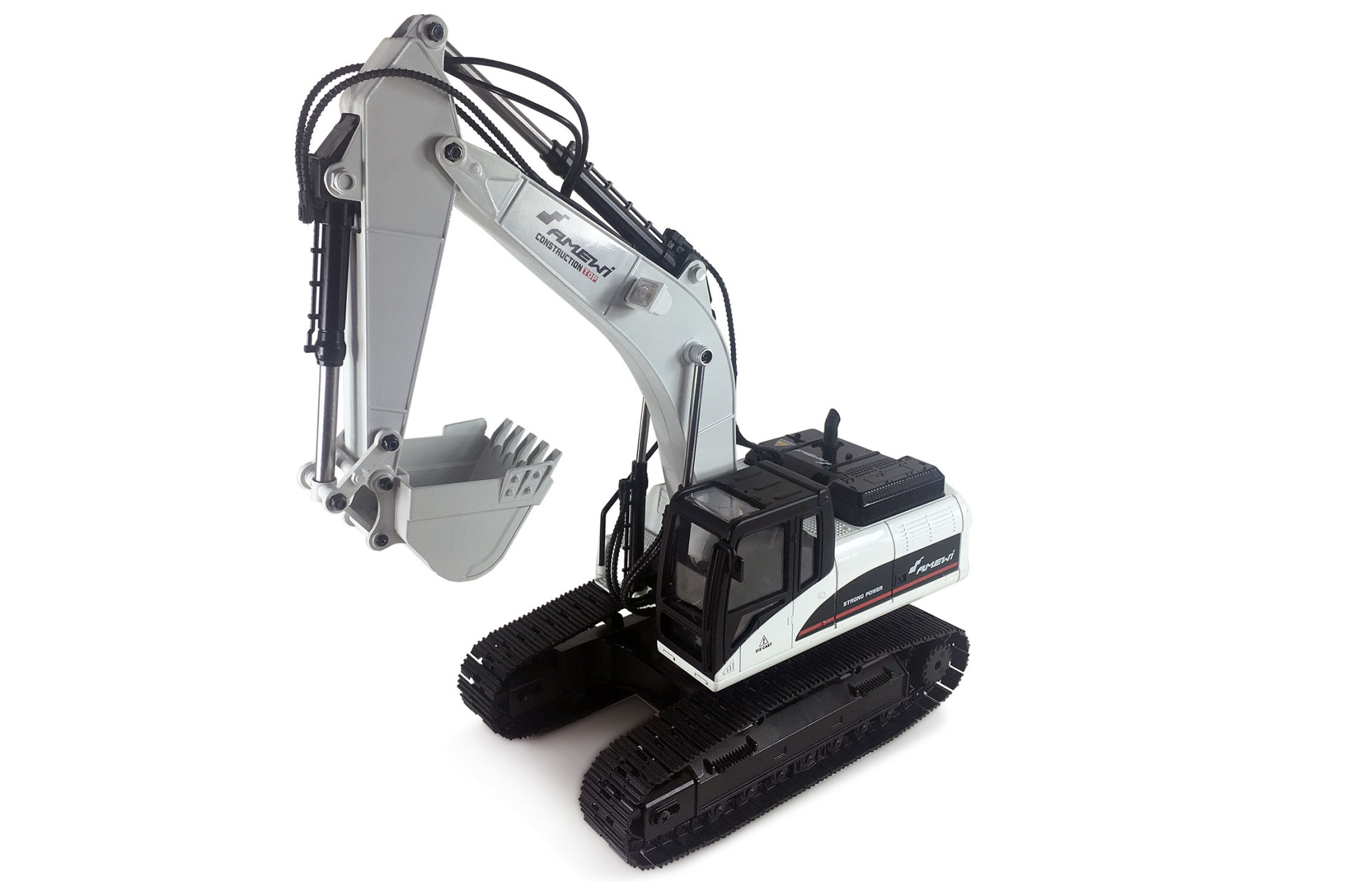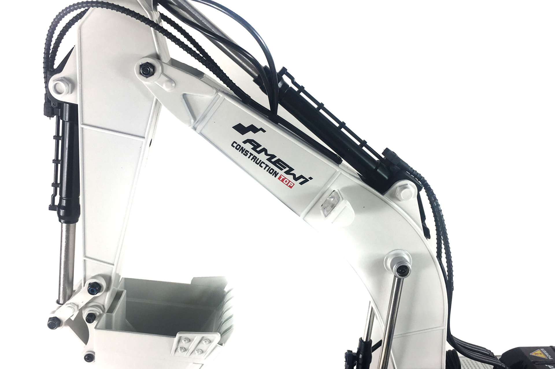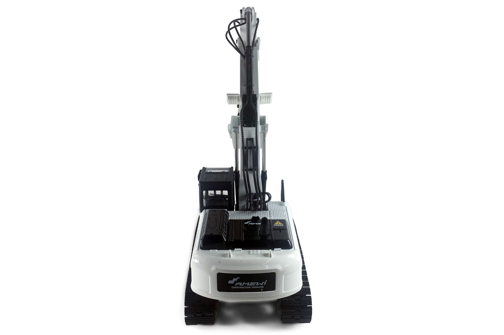 Dieser Vollmetall Bagger im Maßstab 1:14 als exklusive Amewi Edition lässt fast keine Wünsche offen. Der Arm, die Schaufel, der gesamte Aufbau und jede Kette ist separat steuerbar. Das Modell verfügt zudem über einen Sound- und Rauchgenerator. Der Turm ist 360° endlos drehbar. Dieses hochwertig verarbeitete und maßstabsgetreue Modell eines Kettenbaggers schließt die Lücke zwischen Spielzeug und high-end Funktionsmodellbau. Insgesamt können bei dem Vollmetallbagger 23 Kanäle angesteuert werden. Somit steht das Modell dem Original in nichts nach. Die Geländefähigkeit in Verbindung mit der spritzwassergeschützten Elektronik sorgen für ungetrübten Spaß und für eine lange Haltbarkeit der einzelnen Komponenten.