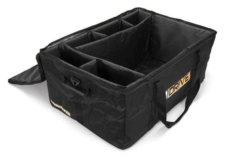 Diese 65,5 x 45,5 x 28 cm große, schwarze Tasche für RC-Fahrzeuge von M-Drive ist eine leichte Tasche, die für die sichere Aufbewahrung, den Transport und den Schutz Ihres 1/10-Autos, Trucks, Monstertrucks und des Senders/Ladegeräts konzipiert wurde.